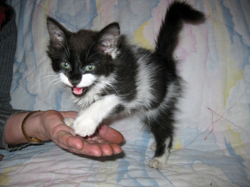 Нет игрушек? Не беда! Малышка Ириска быстро придумает, с чем ей поиграть – с бантиком на веревочке или фантиком от конфеты. Игривости у нее хватит на целое стадо шустрых котяток. А еще она умеет громко тарахтеть и мурчать, ведь она уверена, что человек прекрасно может понимать кошачьи эмоции. Особенно положительные.