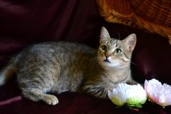 Тойоту никто в эту лежанку не садил специально. Она отдыхала себе на диванчике. Но, когда всех стали по очереди садить в корзинку, а ее нет, то она с обиженным видом уселась в то, что было и стала ждать, когда же на нее обратят внимание. Очаровательная милашка. Бесподобные изумрудные глазки. |