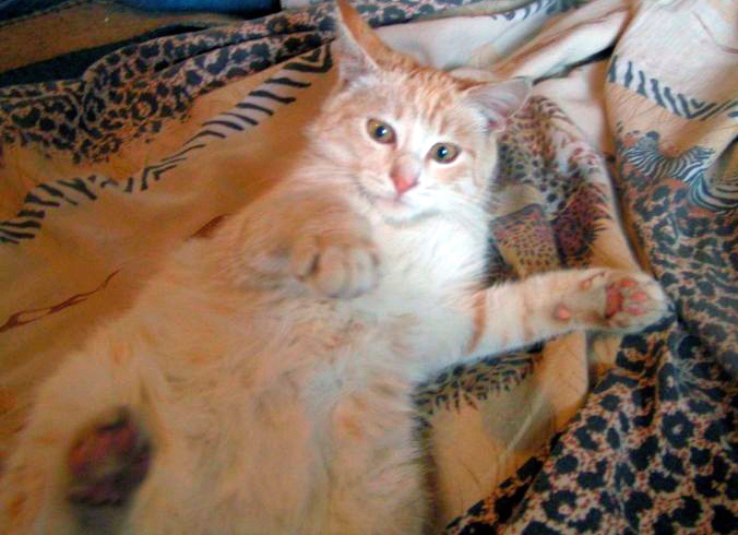 Svetik, фотографии будут. Лукас с четверга у меня. Не смогла его там оставить. С первой попытки отмыть полностью от сажи не удалось Сегодня повторим. Что значит молодой ?! Восстанавливается на глазах, даже хвостик стал распушаться. Очень нежный котик. Он бы там не выжил. |