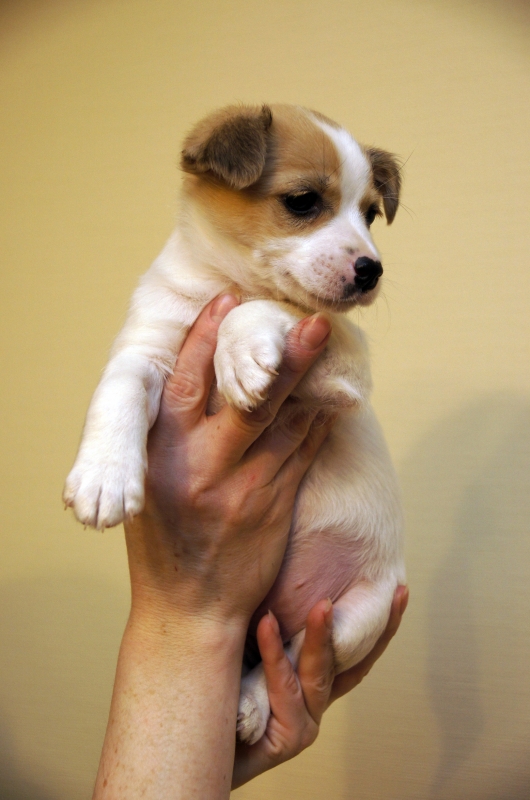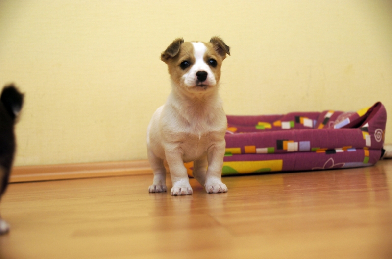 Мама щеночка сама скорее похожа на подросшего щенка, чем на взрослую со6аку:весом около 5-6 кги ростом около 25 см. Да и папа отличается всего не несколько кг и см! Так что малышка обещает быть любимого размера: маленькой собачкой! Яна - очень активная и креативная девчушка. Гроза котов, её девиз - "кто не спрятался - я не виновата!" Играет с игрушками, причем даже сделанные её же лапами! Очень даже не против посидеть на ручках, и уже умеет выпрашивать желаемое. Именно на моих коленках она согласилась доехать до Минска каких то 140 км! Яночка чистоплотная собачка и уже пользуется пеленочками. |